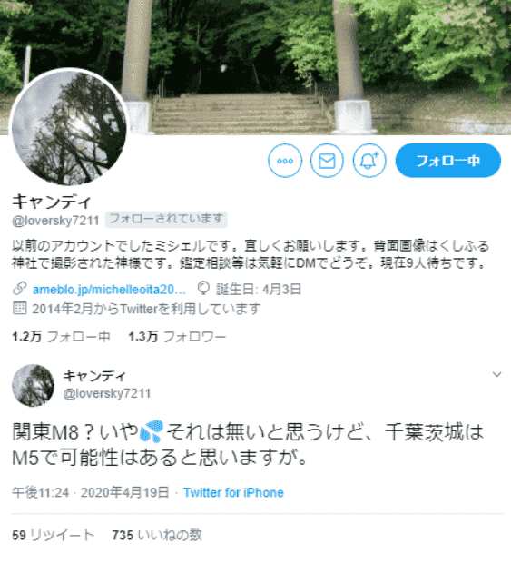 地震 体感 Twitter キャンディ 地震予知ミシェル 2020は震度8の南海トラフ発生で東京オリンピックが中止