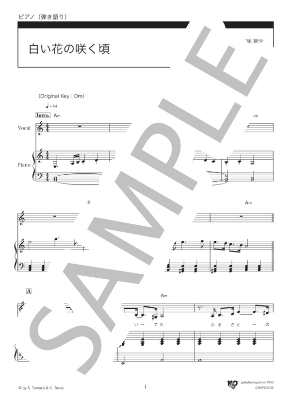 白い花の咲く頃 岡本 敦郎 ピアノ弾き語り 初級 楽譜仕事人pag